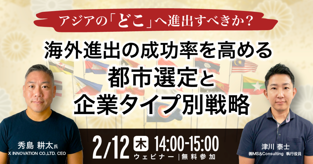 アジアの「どこ」で戦うべきか? 成功率を高める「進出都市選定」と企業タイプ別!海外展開戦略セミナー:MSRセミナー:受付中セミナー:WEBセミナーセミナー:顧客体験(CX)セミナー:店舗集客セミナー:飲食セミナー:チェーン店舗セミナー:売上アップ2026-01-18 15:00