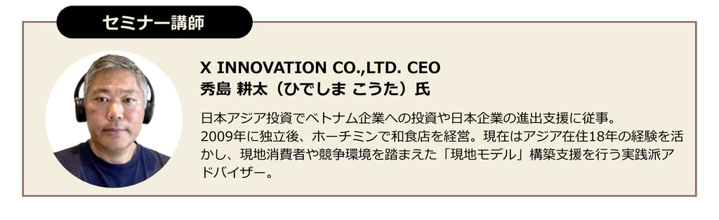 飲食企業の海外進出の成否を分けるポイントは何でしょうか?本記事では、さまざまな日本企業の東南アジア戦略顧問を務めてきた、X INNOVATION CO.,LTD. 代表 秀島耕太氏に講演いただいた「海外で勝つための御三家戦略」や「日本の飲食店が海外進出で陥りがちなミス」「海外で成功する人の考え方」といった内容をレポートします。