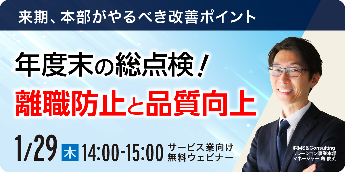 本セミナーでは、年度末に最適な「総点検」として、覆面調査(顧客体験)・ESサーベイ(エンゲージメント)によるデータを活用して「課題を可視化し、来期施策に直結させる方法」を徹底解説。来期に向けた育成・マネジメントの改善ポイントをまとめてお届けします。